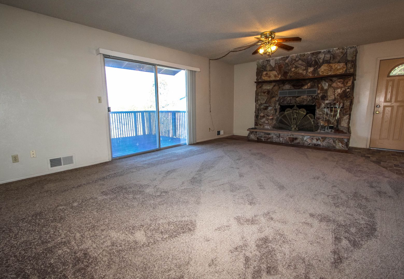 Great views from this 2 bedroom/2 bath home with walkout basement and a carport. Home has gas heat and ceiling fans. Home has a large deck. Kitchen includes refrigerator, electric stove, dishwasher and microwave. Downstairs has a family room with built-in cabinets and utility room with washer and dryer hookups. Rock fireplace is for decorative use only. Assistance Animals Only. No smoking. No college students. Year lease preferred.